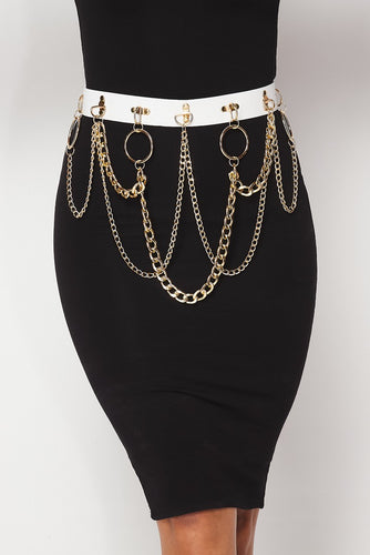 white and gold chained belts